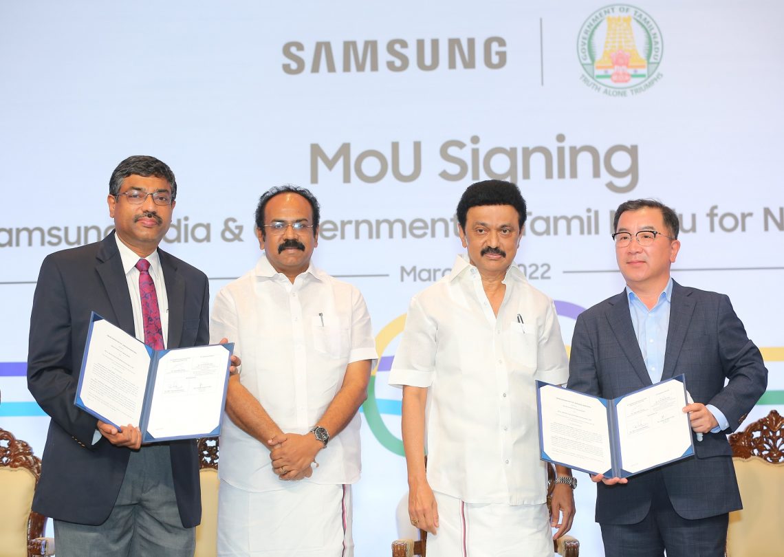 The MoU signing ceremony held in Chennai was graced by Mr. MK Stalin, Chief Minister of Tamil Nadu. Among other dignitaries present were Mr. Thangam Thennarasu, Minister for Industries, Mr. S Krishnan, Additional Chief Secretary, Industries, Ms. Pooja Kulkarni, Managing Director, Tamil Nadu Industrial Guidance and Export Promotion Bureau, Mr. T Anand, Managing Director, State Industries Promotion Corporation of Tamil Nadu, Mr. Ken Kang, President and CEO, Samsung Southwest Asia and Mr. ByongJin Kong, Managing Director, Samsung Chennai Factory.
